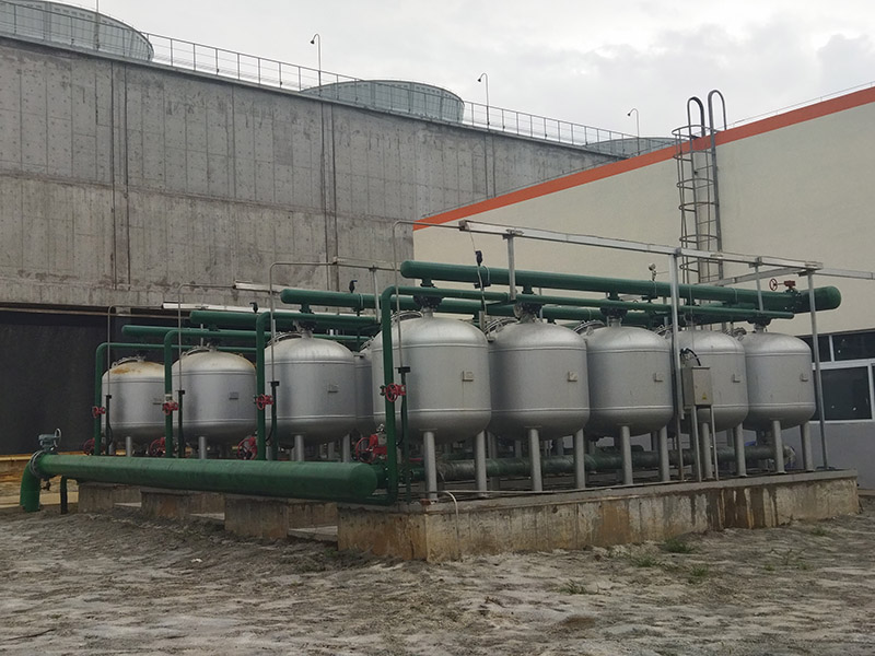 本項目為循環(huán)水站的全自動過濾器處理設備,總計4套。其中單套設計處理能力1000m3/h,計20臺過濾罐,3套;單套設計處理能力500m3/h,計10臺過濾罐,計1套。本項目過濾水源為循環(huán)回水,進水濁度:≤20NTU;過濾出水水質:濁度<3NTU,反洗方式為內原反洗。